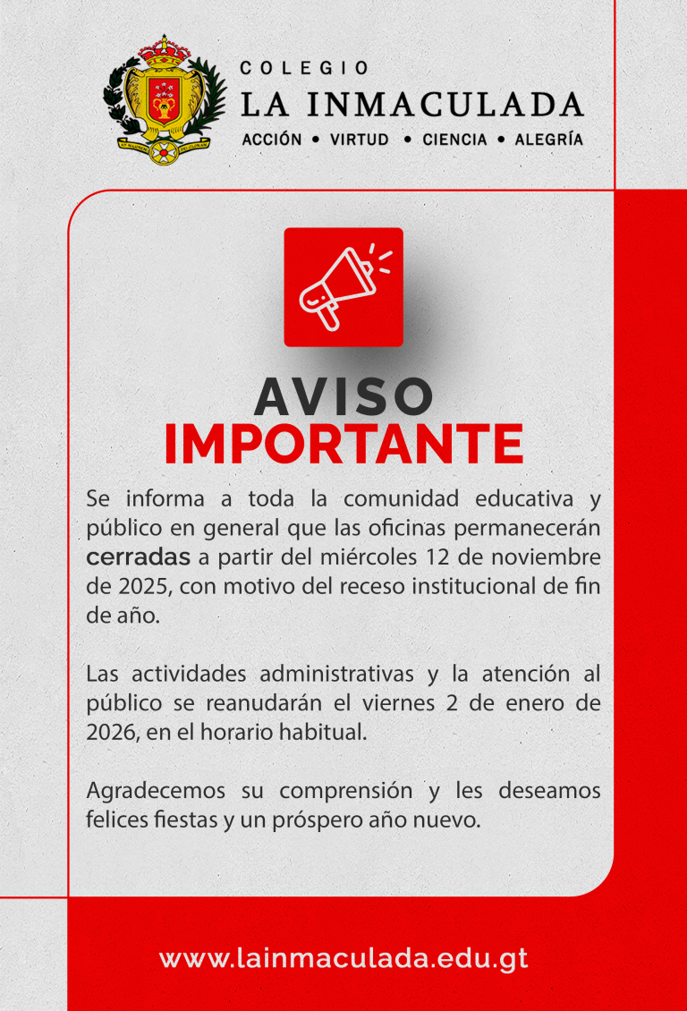 Agradecemos de corazón la preferencia, el apoyo y la confianza que nuestra comunidad educativa brindó al Colegio La Inmaculada durante todo el 2025.