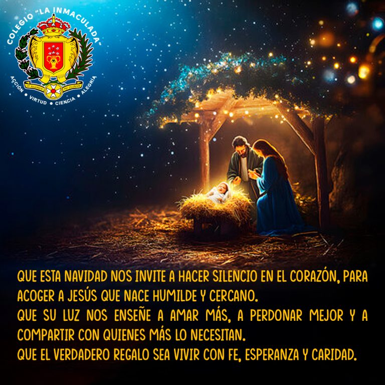 Con alegría por el nacimiento de Jesús, el Colegio La Inmaculada desea a toda su comunidad educativa una Navidad llena de fe, paz y esperanza, que el amor de Dios renueve nuestros corazones y fortalezca la unión de nuestras familias.